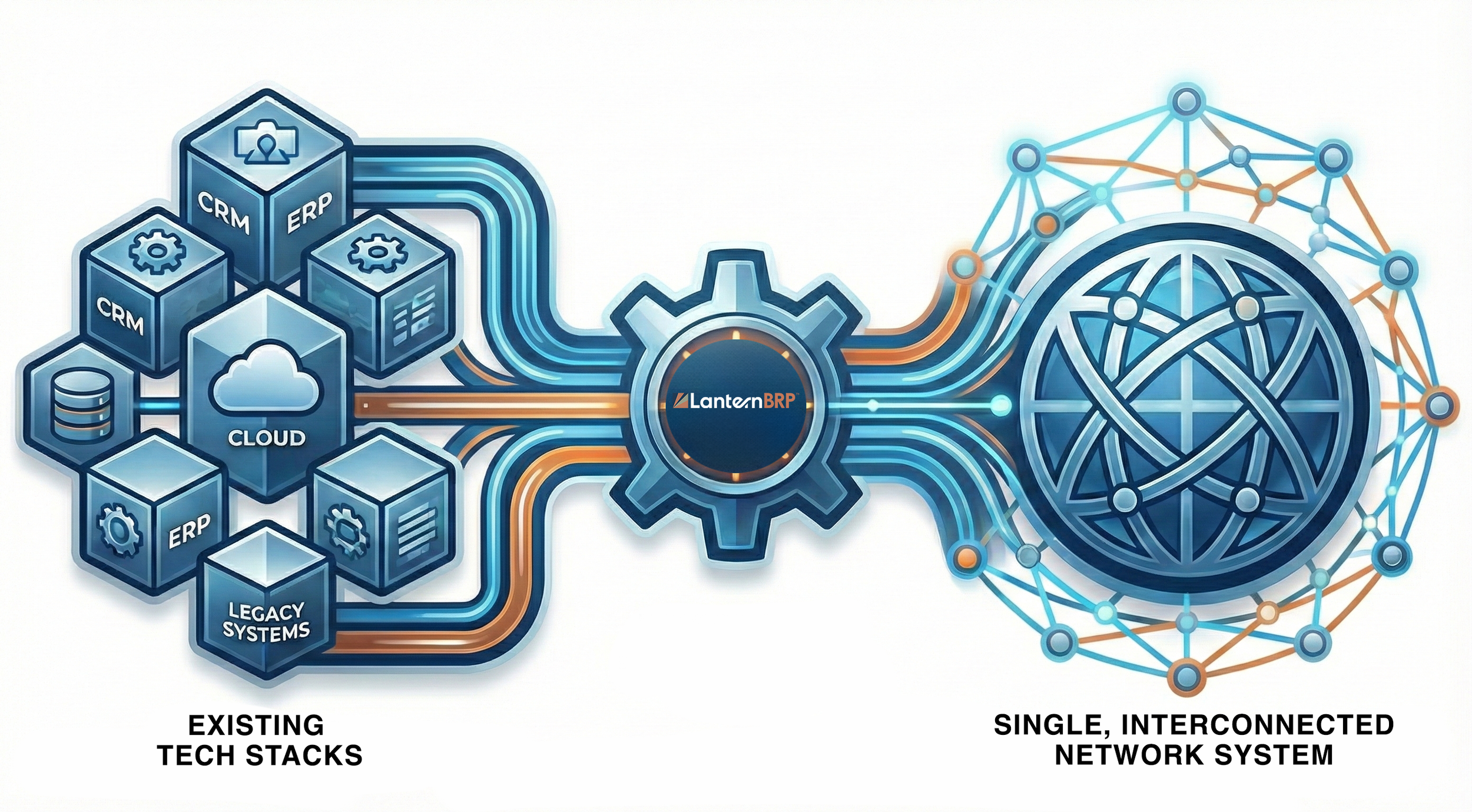 LanternBRP™ integrates effortlessly with existing tech stacks, creating a single, interconnected network system.